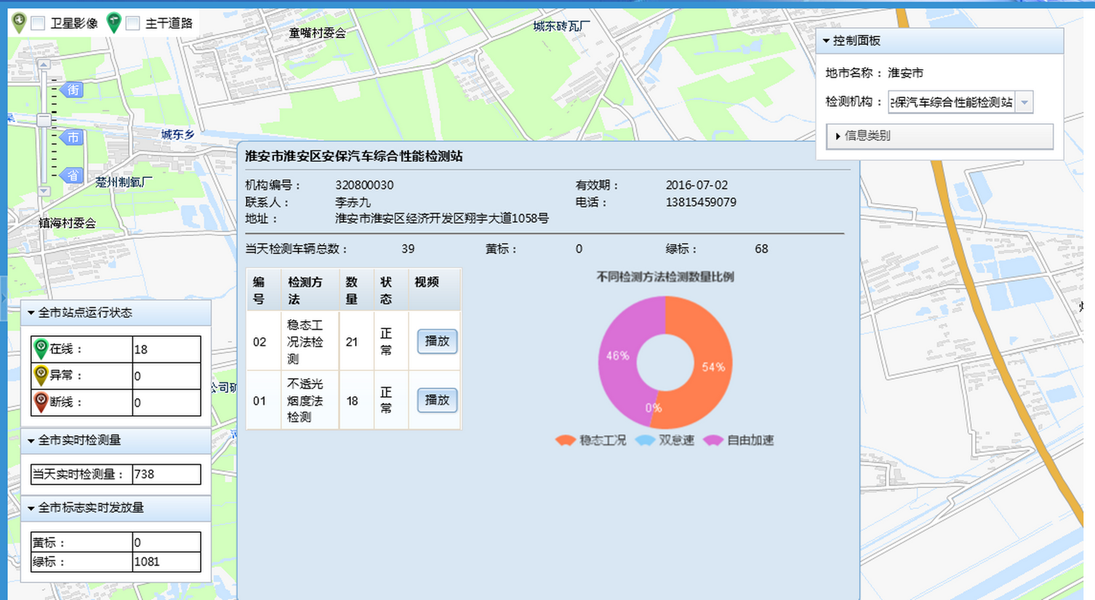 2、提高機動車環保檢驗質量:利用實時視頻監控和數據監控技術對全省環檢機構的檢測進行全過程自動監控。通過過程數據與結果數據的比對,對異常行為進行判斷,及時發現檢測中存在的問題,提高檢驗數據的真實性、公正性和準確性。
