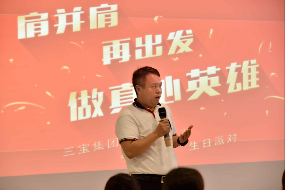 隨后,三寶科技集團總裁孫懷東發表講話,在祝福公司27歲生日快樂之余,他感慨“自助者天助”,都說天佑三寶,但是他看到了公司危機解決過程中,全體三寶人表現出的能打仗、打硬仗的良好作風。對于集團下一步的工作,他提出了三方面的要求:首先,核心管理層要深刻反思、吸取教訓,防止重蹈覆轍,不能浪費新機遇;其次,管理層也強化業績導向,加強業務策劃、落實能力,要用成績和利潤說話;第三,集團要聚焦在主業,加大主業的資源投入,爭取利用三年時間,實現集團整體價值的大幅提升。