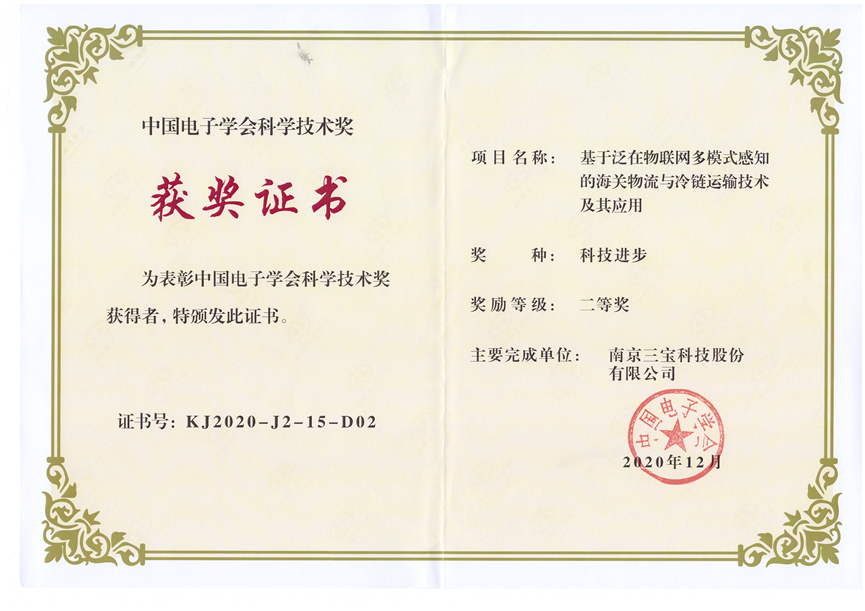 近日,從中國(guó)電子學(xué)會(huì)傳來(lái)喜訊,我公司與南京郵電大學(xué)等單位聯(lián)合開展的“基于泛在物聯(lián)網(wǎng)多模式感知的海關(guān)物流與冷鏈運(yùn)輸技術(shù)及其應(yīng)用”獲得2020中國(guó)電子學(xué)會(huì)科技進(jìn)步獎(jiǎng)二等獎(jiǎng)!受疫情影響,該獎(jiǎng)項(xiàng)近日正式頒發(fā)。